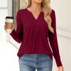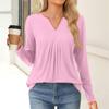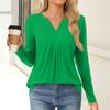 Женская мода повседневная рубашка с длинным рукавом, однотонные топы с V-образным вырезом