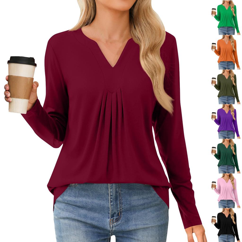 Женская мода повседневная рубашка с длинным рукавом, однотонные топы с V-образным вырезом — купить товар онлайн с бесплатной доставкой до всему миру!