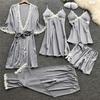 Женский пижамный костюм из 5 предметов: ночная рубашка, топ, шорты, брюки, комплект, сексуальное кружевное платье, пижамы, ночная рубашка