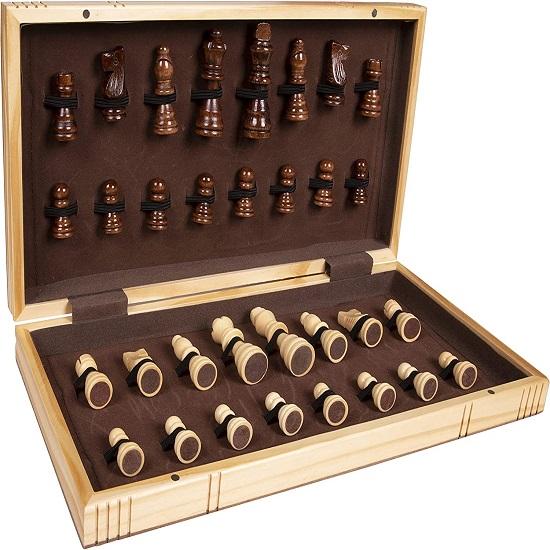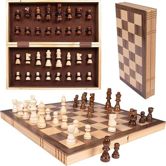 ДЕРЕВЯННЫЕ ШАХМАТЫ: Возьмите нашу складную шахматную доску с собой куда угодно. Идеальный дорожный набор шахмат с удобным местом для хранения ваших игровых фигур.. Подходящие настольные игры для взрослых и настольные игры для 2 игроков для настольных игр для всей семьи. Идеальные шахматы для детей и походные шахматы. Долгосрочные стратегические настольные игры, которые улучшают стратегическое мышление вашего ребенка