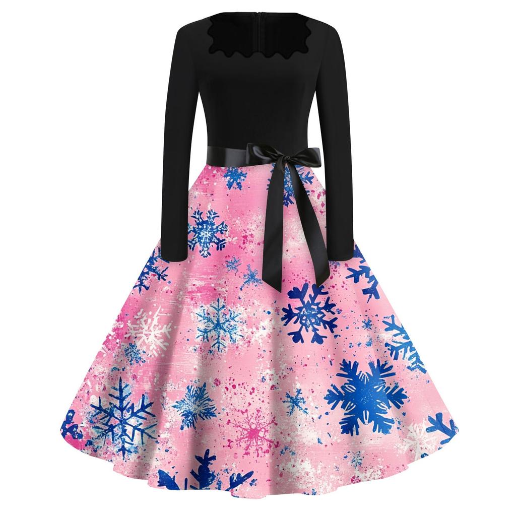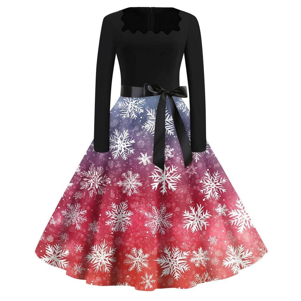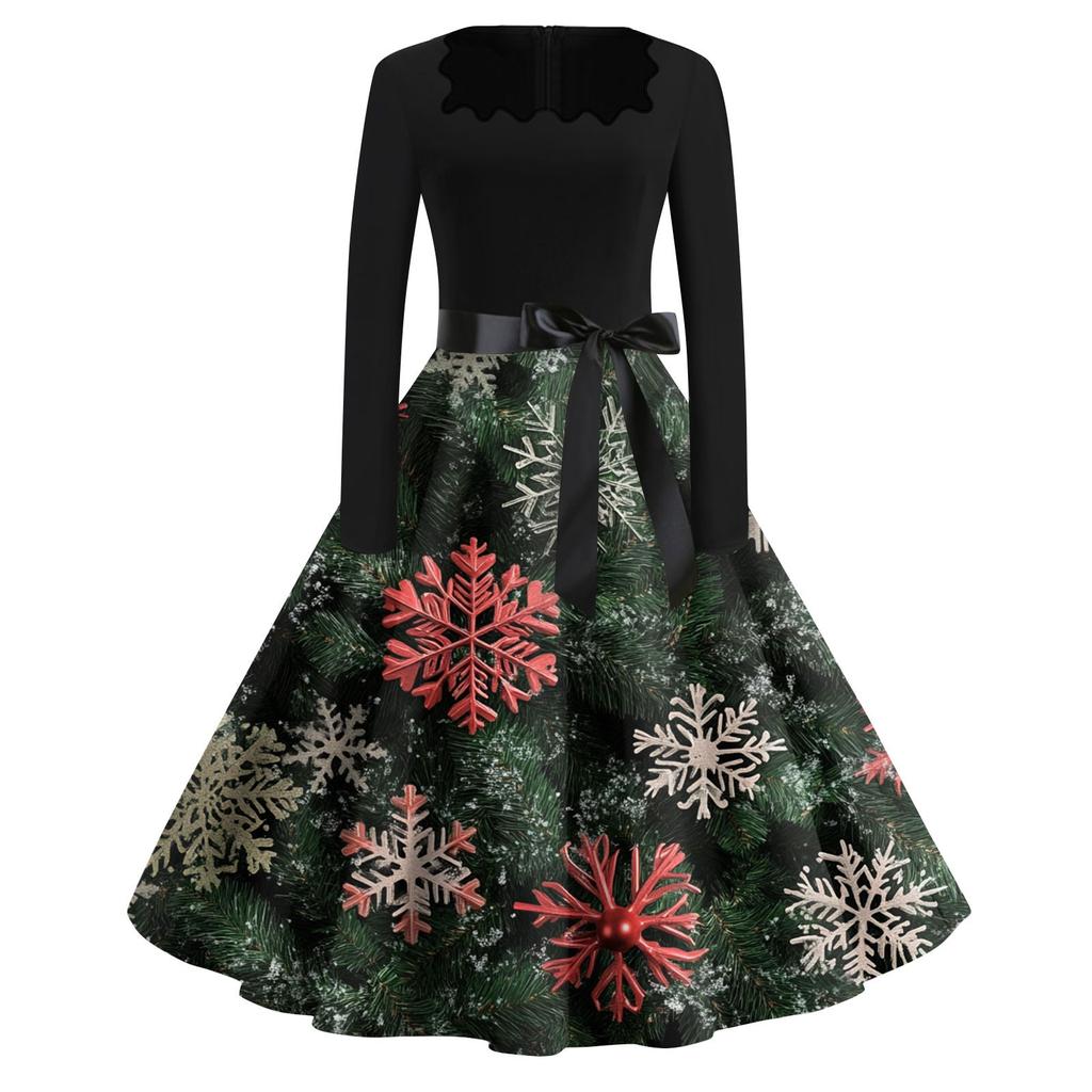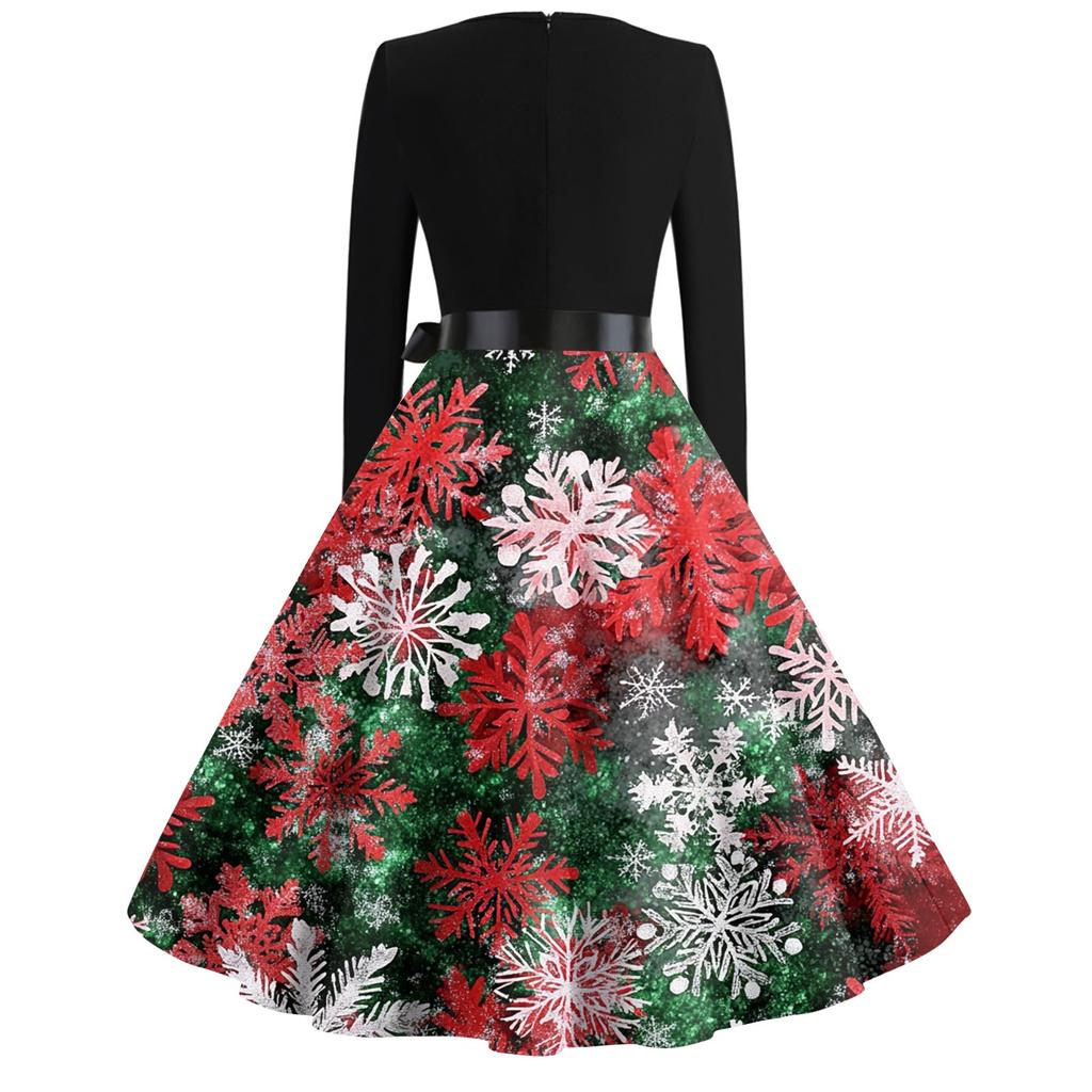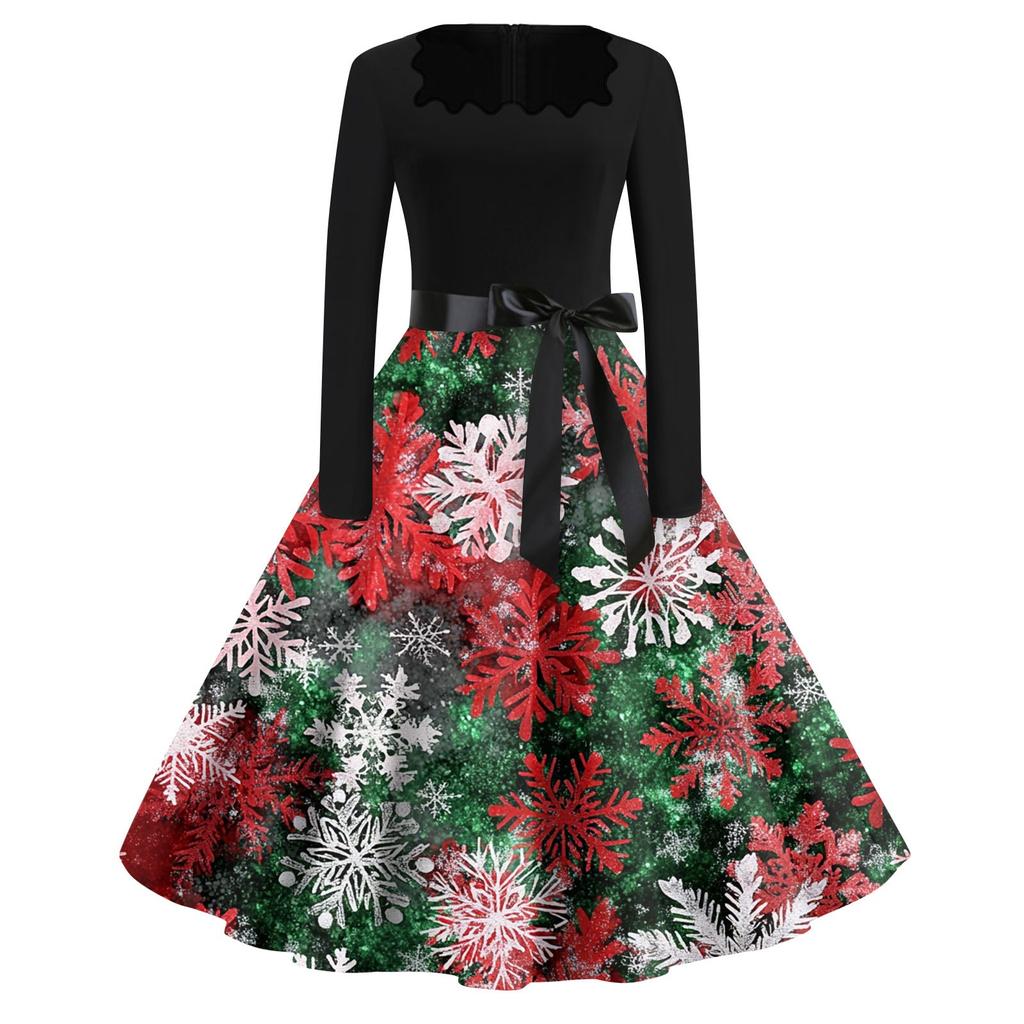 Женская мода с круглым вырезом, повседневные тонкие рождественские платья с длинным рукавом и принтом