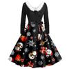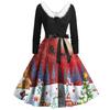 Женское винтажное платье с длинным рукавом и рождественским принтом в стиле 1950-х годов для вечеринки, выпускного вечера, для домохозяйки
