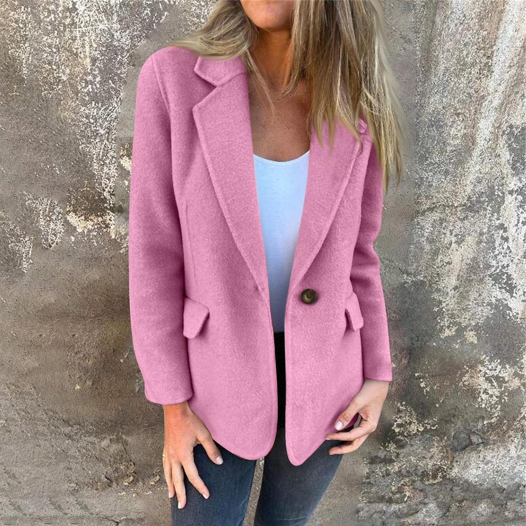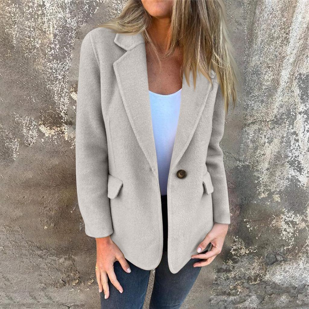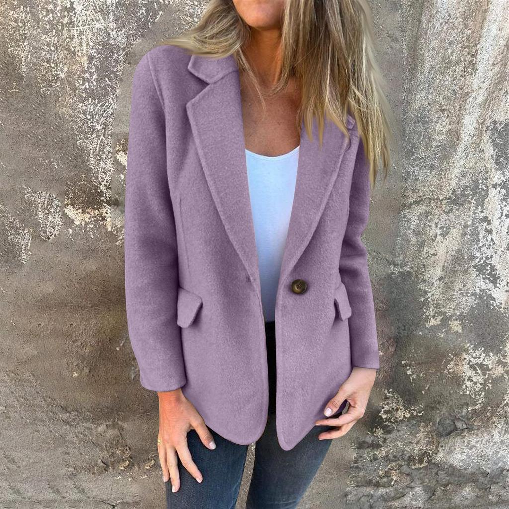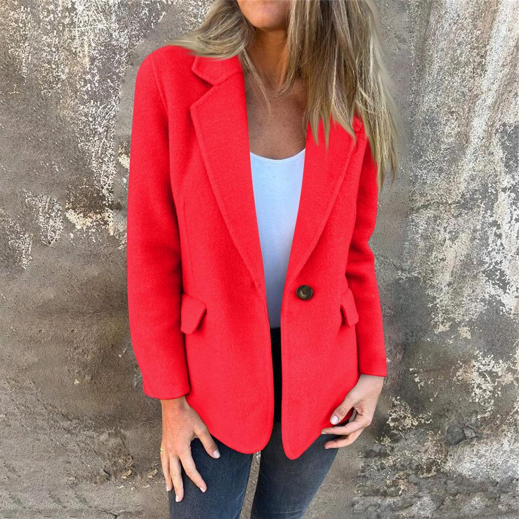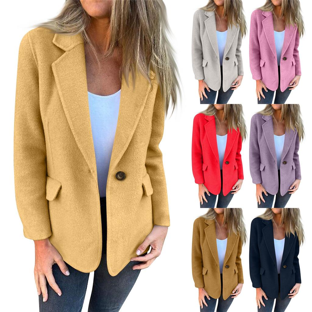 Женские куртки Повседневная куртка с лацканами и длинным рукавом Однотонное пальто для женщин