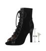 Модные босоножки на каблуках со шнуровкой 9 см женская обувь лето 2024 тренд черные сексуальные ботинки с открытым носком модные тканевые туфли на шпильке джазовые танцевальные женские