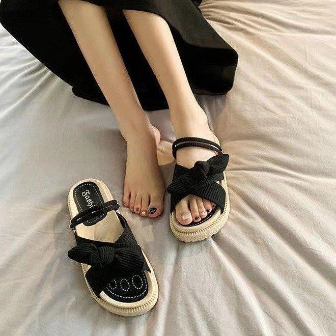 Модные женские тапочки Butterfly-Knot в сказочном стиле, летние шлепанцы для женщин, римские сандалии на толстой подошве, 2024, новая модная женская повседневная обувь