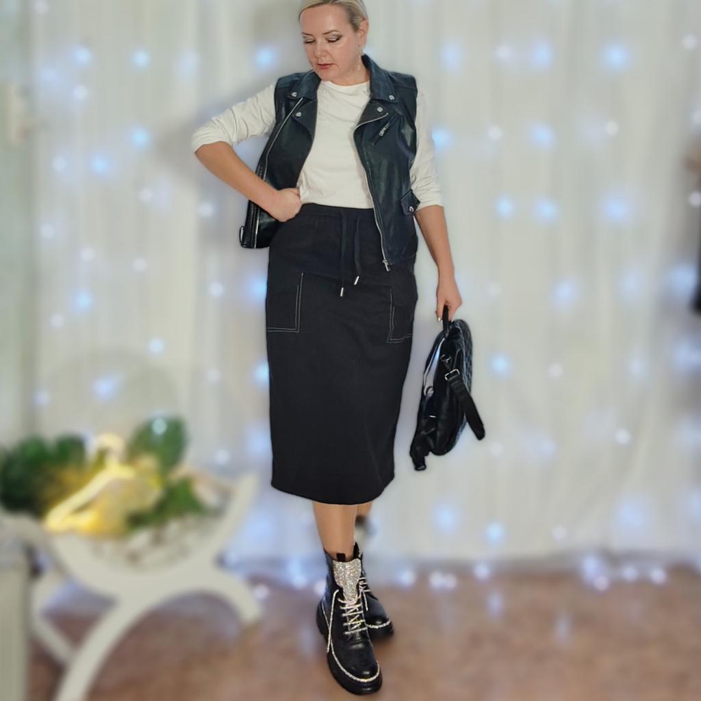 Теплая юбка- карандаш ✔️Два цвета на выбор Размеры XL-5XL. Мои параметры : 167, 98-85-100. На мне размер 2XL . ✔️Фасон: Силуэт прямой На талии резинка и шнурок Карманы и спереди и сзади, передние карманы выделены контрастной строчкой Сзади разрез ✔️Ткань: Совершенно не разбираюсь в тканях, но про эту могу сказать только самое хорошее : она очень мягкая, к телу не просто приятная, а прям дружественная) не электризуется, тянется умеренно. Мне она напомнила фланель, только плотнее. И да, юбка теплая, сгодится и на зиму, и на промозглую осень, и раннюю весну. ✔️Пошив фабричный. 📐Замеры : ОТ 70-94 ОБ 106 Длина 79