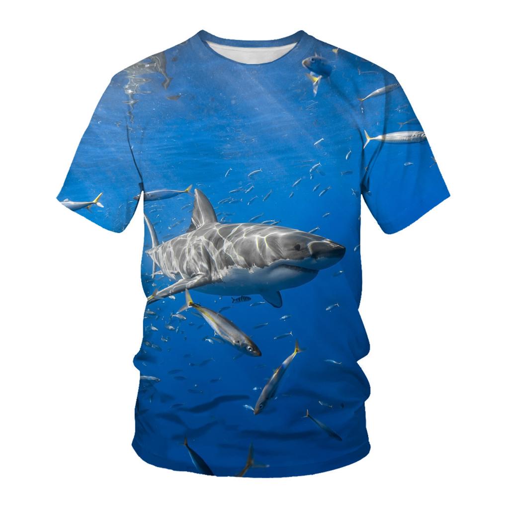 Летняя футболка с 3D принтом акулы, модные мужские повседневные футболки с круглым вырезом и короткими рукавами, уличная одежда больших размеров в стиле Харадзюку, мужские детские футболки, топы