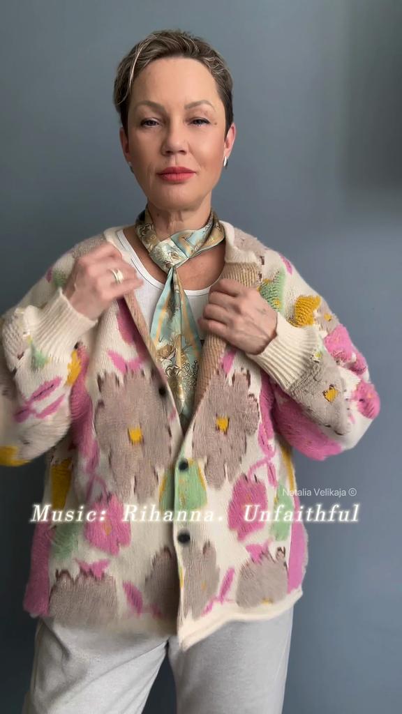 Dimanaf 2024 Плюс Размер Осеннее Пальто Женские Пуговицы Цветочные Свитера Куртка Вязание Модный Оверсайз Повседневный Розовый Стиль Свободный Кардиган Свитер