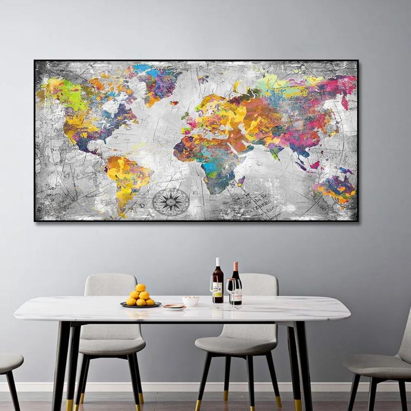 Золотая карта мира, фотографии, постеры и принты, настенные художественные холсты, картины для украшения гостиной, Cuadros, домашний декор, без рамки