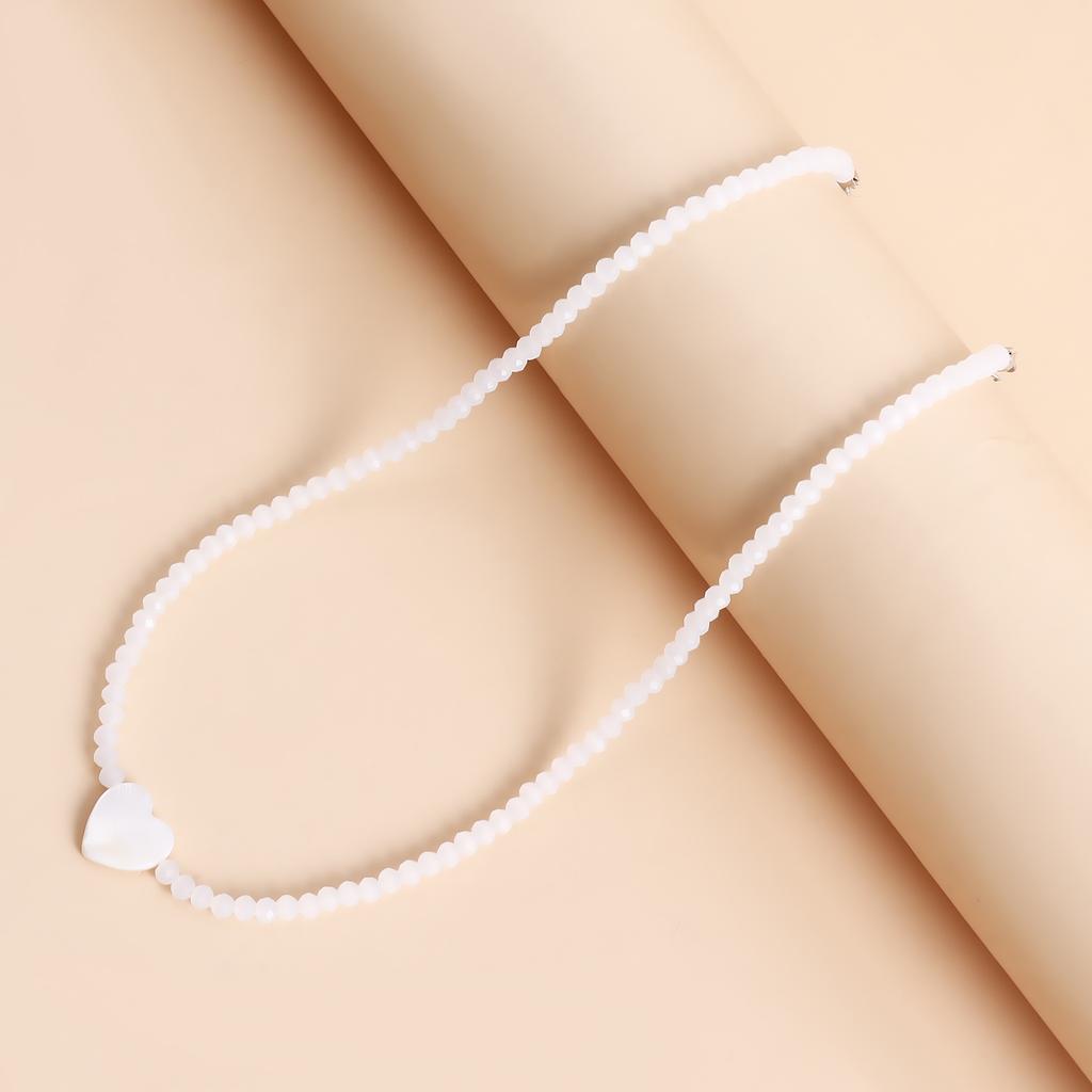 Ожерелье из бисера в богемном стиле с нефритом и белым кристаллом, темпераментное перламутровое сердце, простое ожерелье с подвеской для женщин