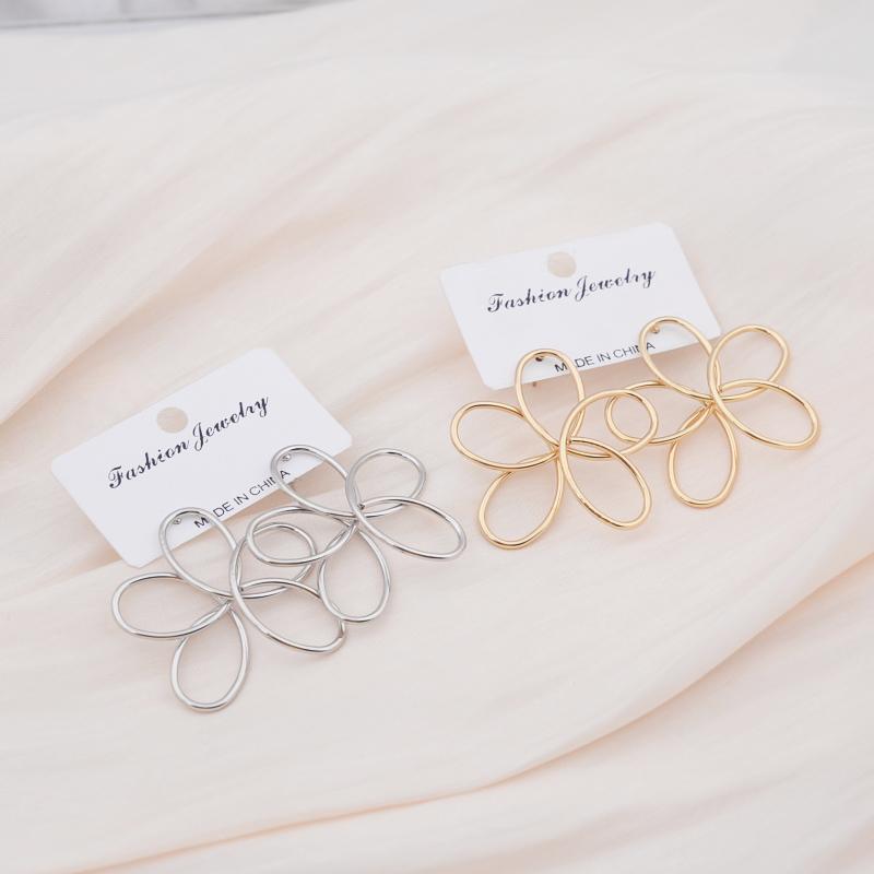 Большие полые металлические серьги-подвески с пятью лепестками для женщин Art Brincos Hyperbole Fashion Party Jewelry
