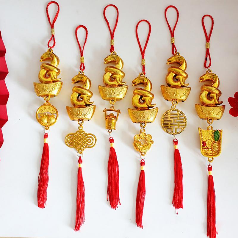 1 шт., талисман удачи 2025 года Змеи, позолоченный пластиковый кулон в виде змеи на Новый год, украшения для дома и автомобиля