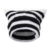 Японская милая шапка с кошачьими ушками в черно-белую полоску, шерстяная, женская, осенне-зимняя, теплая, шапка-бини, вязаная, с подвесным помпоном, маленького дьявола — купить товар онлайн с бесплатной доставкой по всему миру!