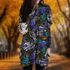Новинка осени Скелет змеиный принт плюс размер платье женщины O'neck длинные рукава повседневные карманные платья