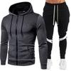 Модная мужская куртка из двух частей, на молнии, толстовка с капюшоном и штаны, зимняя теплая спортивная одежда для бега и спорта