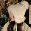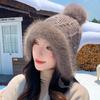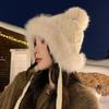 Зимняя шапка из искусственного меха лисы для женщин - толстая теплая вязаная шапка-ушанка, ручная стирка, смесь хлопка, не растягивается