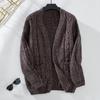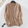 Осень-зима Винтажный свободный топ с длинными рукавами однотонный кардиган трикотажный свитер с V-образным вырезом