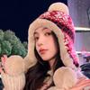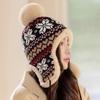 Женская зимняя вязаная шапка-бини с ушами, длинная защита ушей, эластичная и плотная