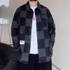 Осенняя модная куртка свободного покроя в стиле ретро с рисунком в виде шахматной доски большого размера из денима для мужчин