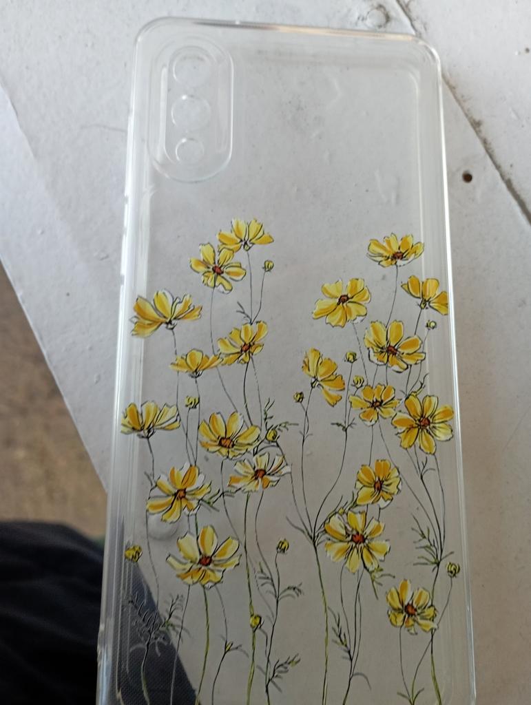 Чехол из мягкого пластика. Подошёл идеально, смотрится красиво и в руке держать приятно. Рисунок напечатан.