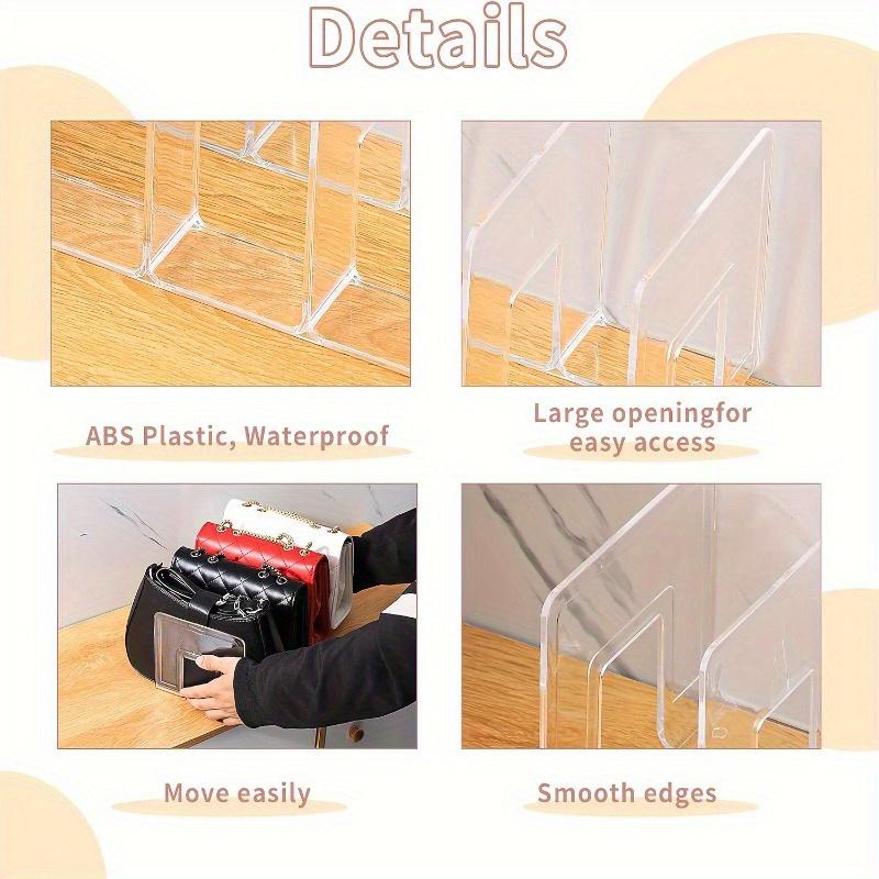 Универсальный прозрачный пластиковый органайзер для шкафа - 4-секционный разделитель для хранения сумок и кошельков, прочная книжная полка для дома, общежития, офиса