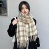 Клетчатый шарф женский зимний корейский выпуск женский высококачественный универсальный женский стиль атмосферный клетчатый шарф с кисточками