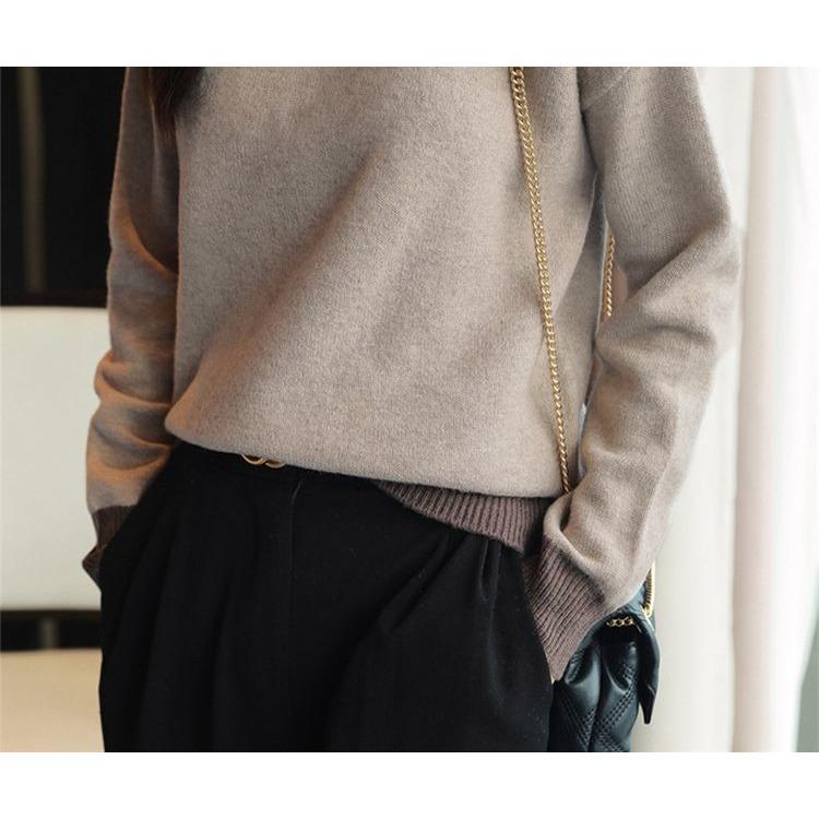 Осенне-зимний вязаный свитер женский с отложным воротником, цветные блоки, корейский выпуск, свободный тонкий верх, ленивый низ, рубашка