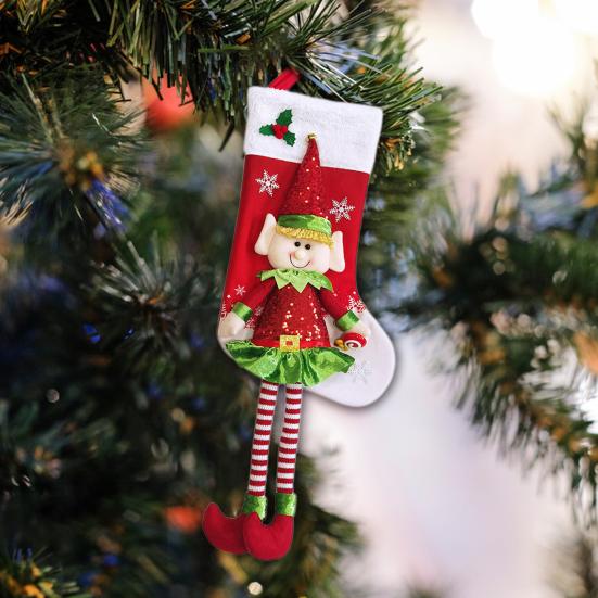 Уникальный дизайн: Эти чулки с изображением классической рождественской куклы-эльфа с длинными ногами и объемным дизайном добавят нотку причудливого очарования вашему праздничному декору.