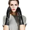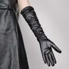 Зимние женские перчатки из искусственной кожи с плиссированным ворсом и сенсорным экраном, сексуальная шелковая подкладка, 50 см, длинные, с полным пальцем, теплые, для вождения