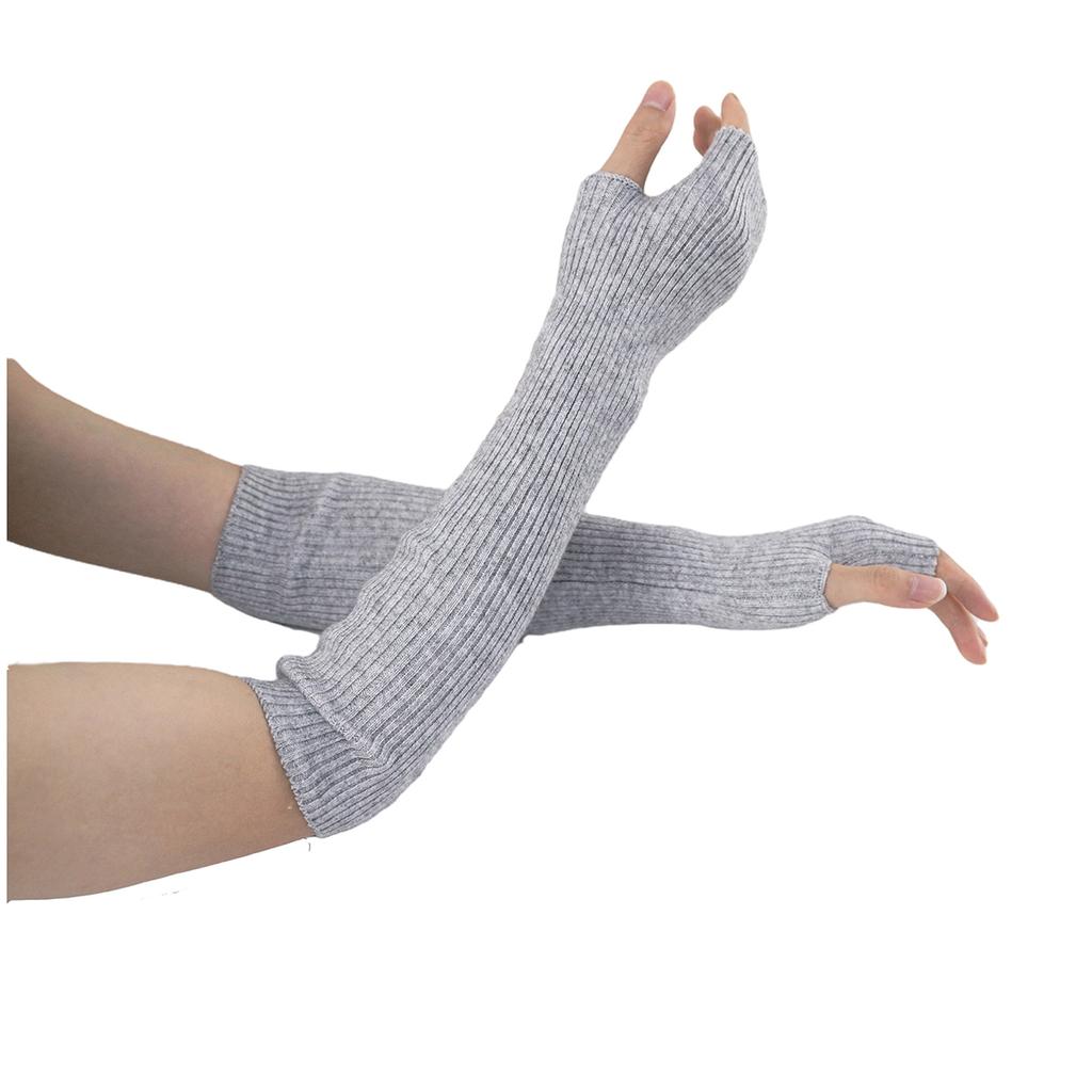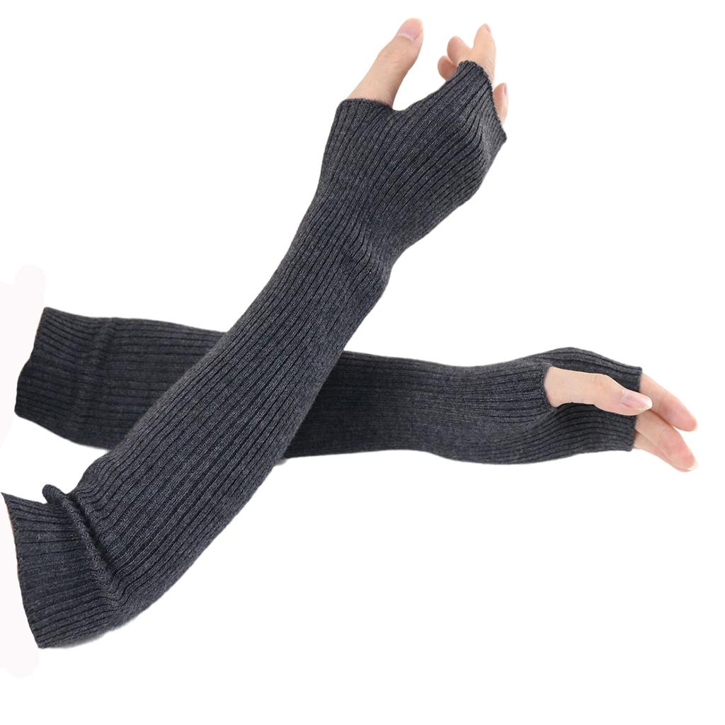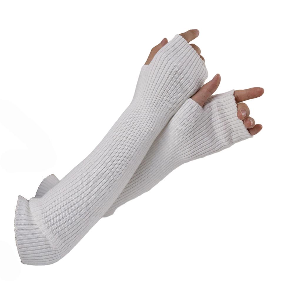 Женские зимние кашемировые длинные перчатки без рукавов, вязаные из шерсти y2k, готические, теплые, мягкие, белые, панк-варежки, рукав до локтя, 40 см