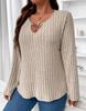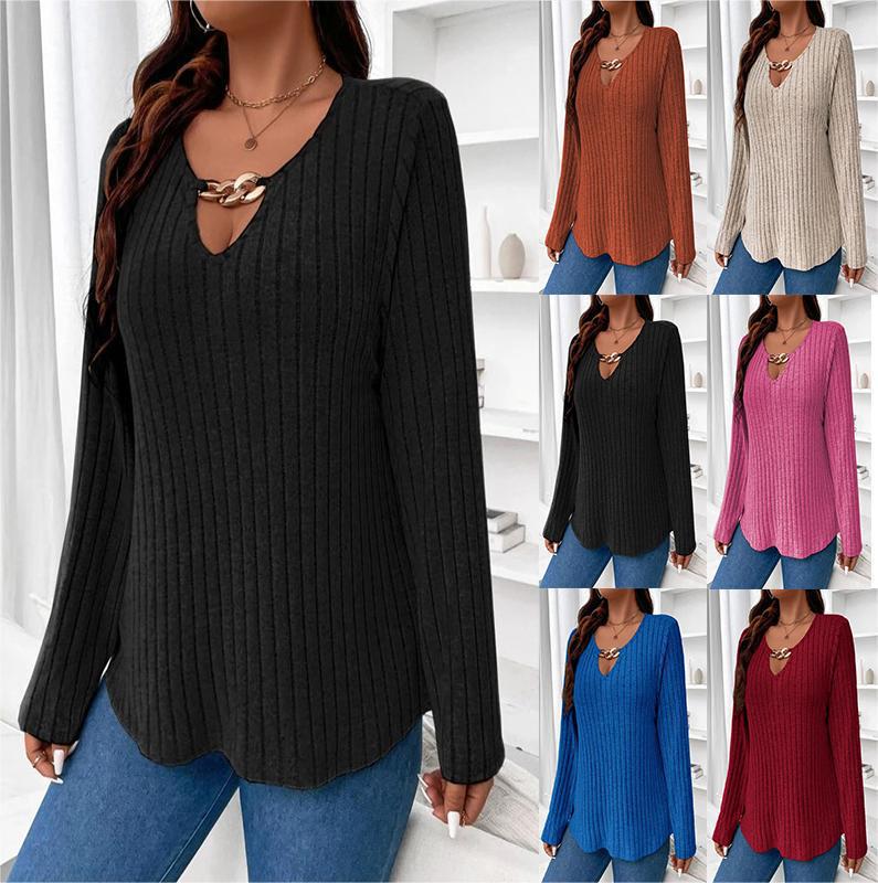 Элегантная полосатая футболка с V-образным вырезом для женщин - коллекция осень/зима 2024 — купить товар онлайн с бесплатной доставкой до всему миру!