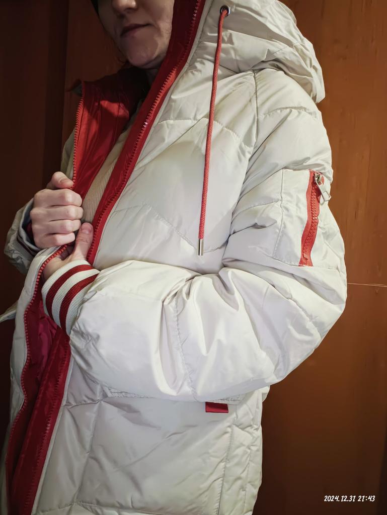 Цвет куртки отличается от фото, более темный и красный оттенок. На мой российский L размер куртка размером XL впритык, надо брать больше. На мой рост 160 см коротковаты рукава и высоко расположены карманы, неудобно. Наполнитель синтепон. К сожалению, не очень удачная покупка.