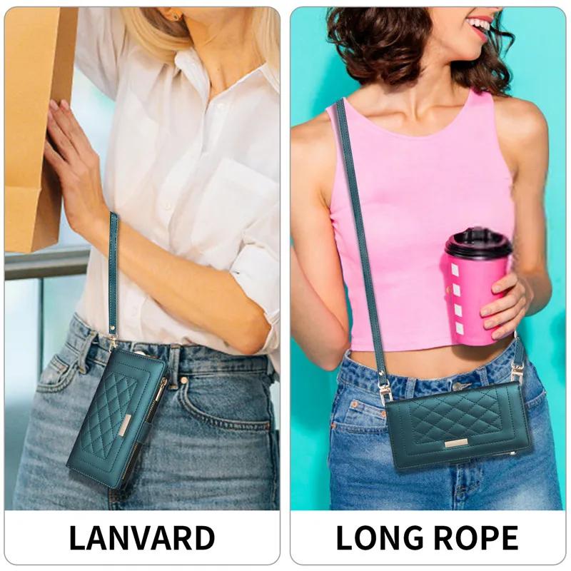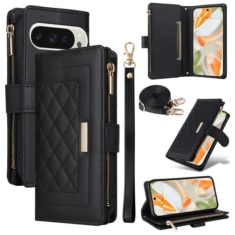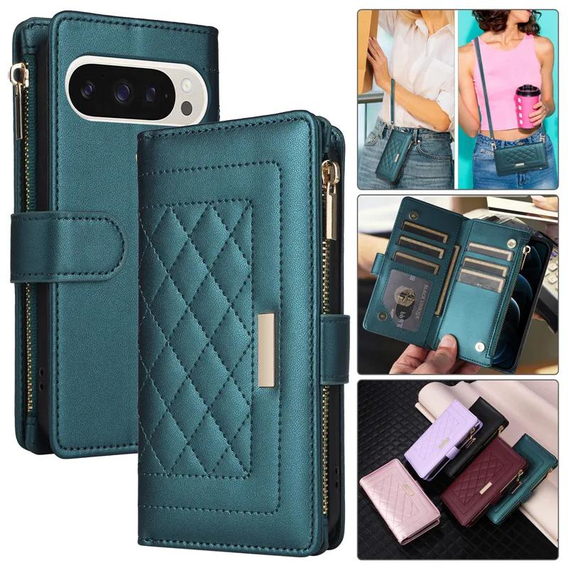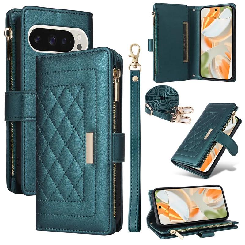 Для Google Pixel 9 Pro XL 8 8A 7 7A 6A ремешок через плечо кожаный кошелек на молнии отделения для карт чехол для телефона запястье веревка флип-подставка чехол