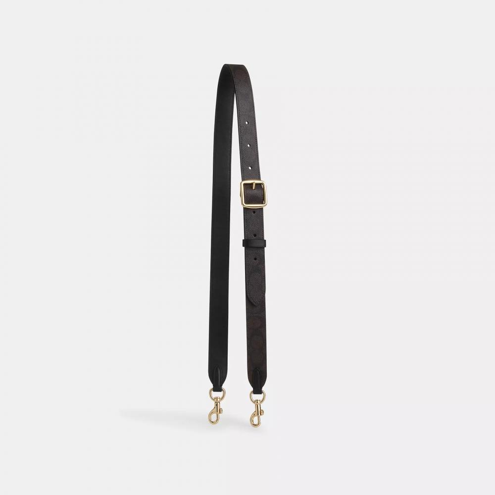 Coach Двусторонний ремешок из фирменного холста золотисто-орехового цвета черного цвета