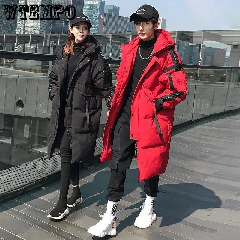 Зимний теплый и красивый пуховик мужской средней длины выше колена, свободная толстая куртка для пар с капюшоном, пальто-парка — купить товар онлайн с бесплатной доставкой по всему миру!