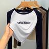 Женский осенне-зимний круглый вырез, контрастные цвета, длинный рукав, тонкий прошитый топ