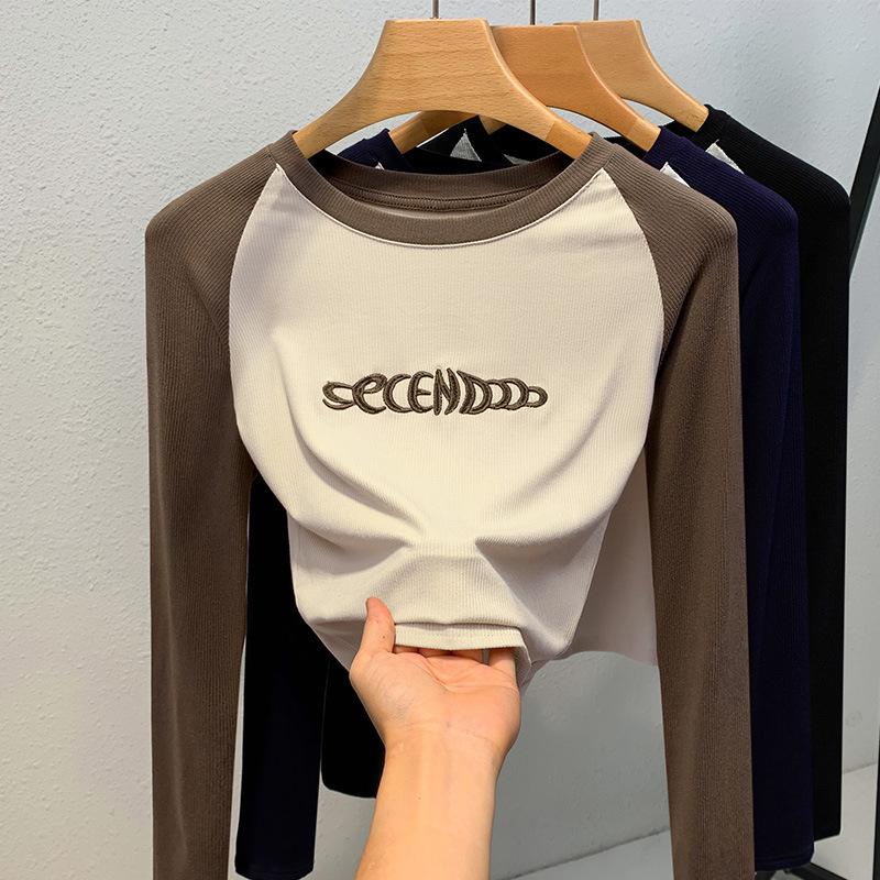 Женский осенне-зимний круглый вырез, контрастные цвета, длинный рукав, тонкий прошитый топ — купить товар онлайн с бесплатной доставкой по всему миру!