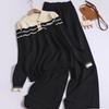 Женский повседневный осенний комплект из двух предметов, свободный контрастный цвет, отложной воротник, длинный рукав, широкие брюки с карманами, трикотажный костюм