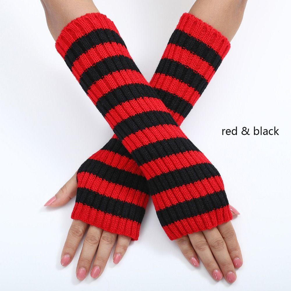 Вязаные теплые перчатки, готические теплые перчатки с полупальцами, длинные перчатки с запястьями, накладные рукава, варежки до локтя в полоску, осень-зима