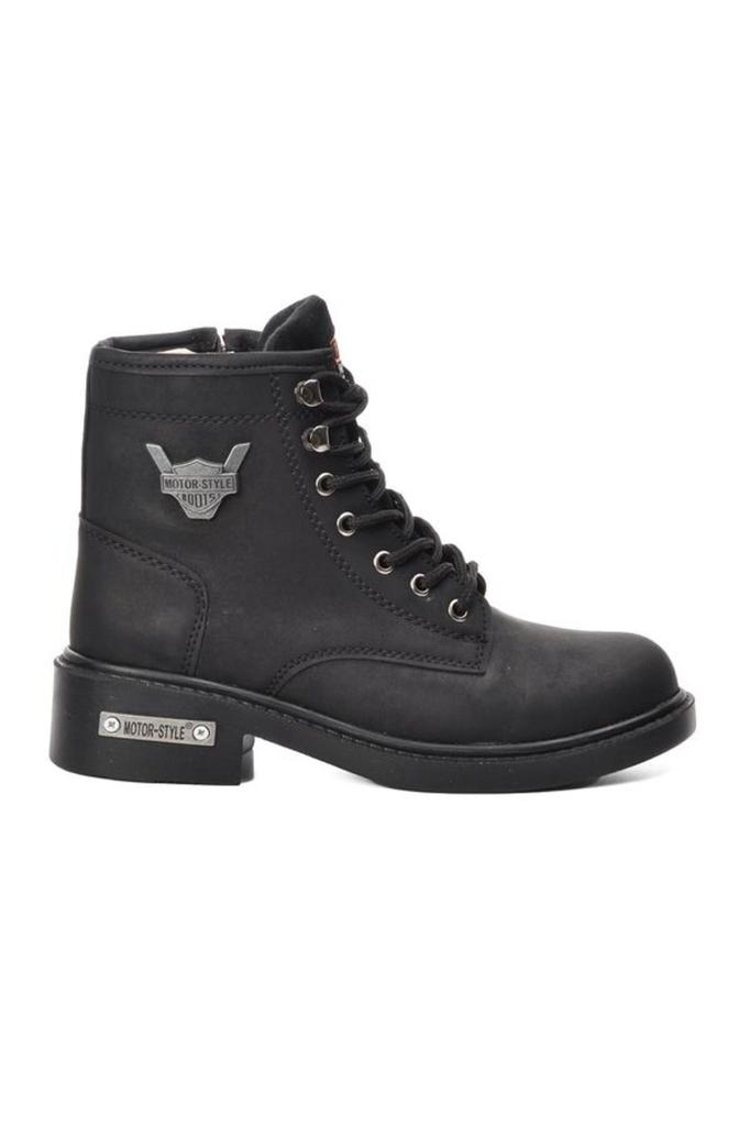 Men's Fashion Flat Heeled Booties Black Unisex Worker Boots with Fleece Inside