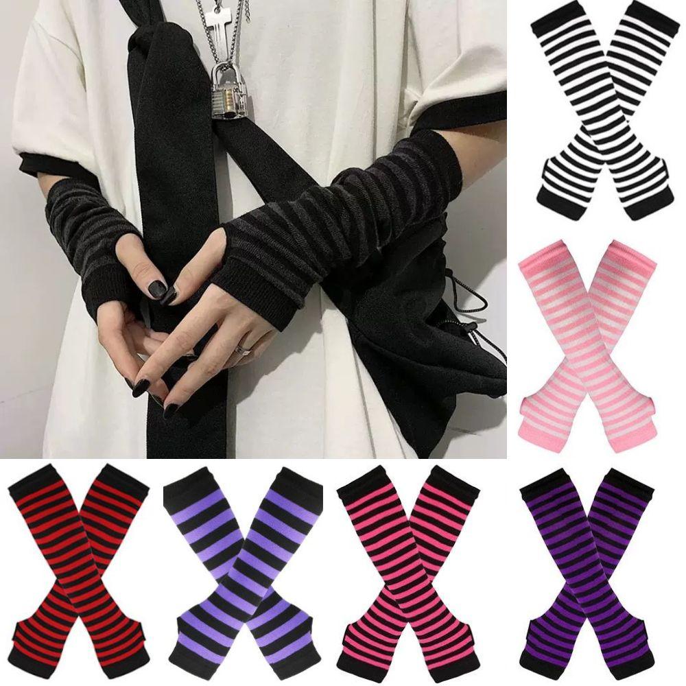 Полосатые унисекс перчатки с половиной пальцев длинные женские перчатки для девочек перчатки на руку теплые вязаные напульсники локтевые варежки теплая манжета