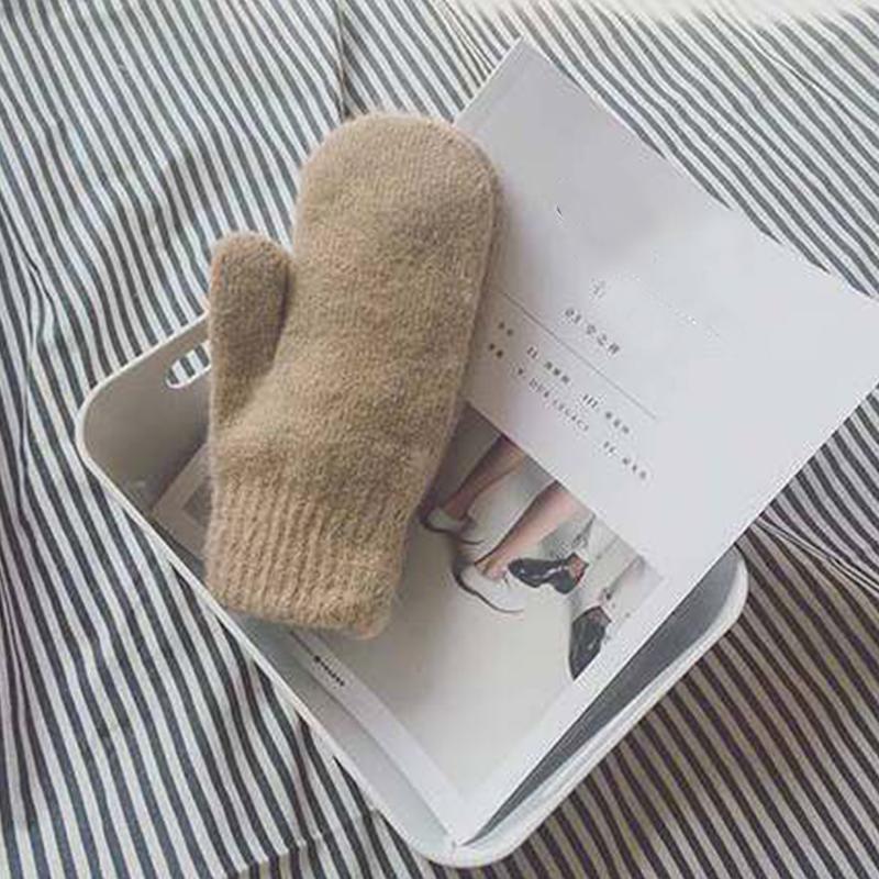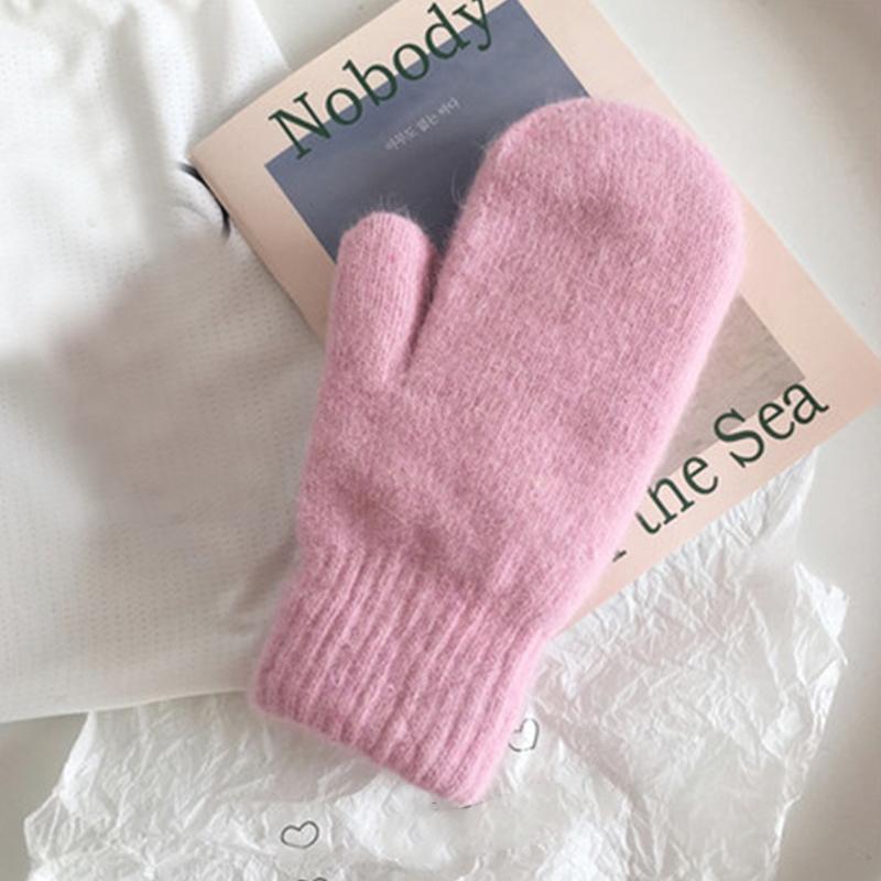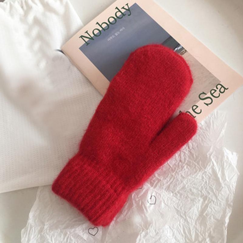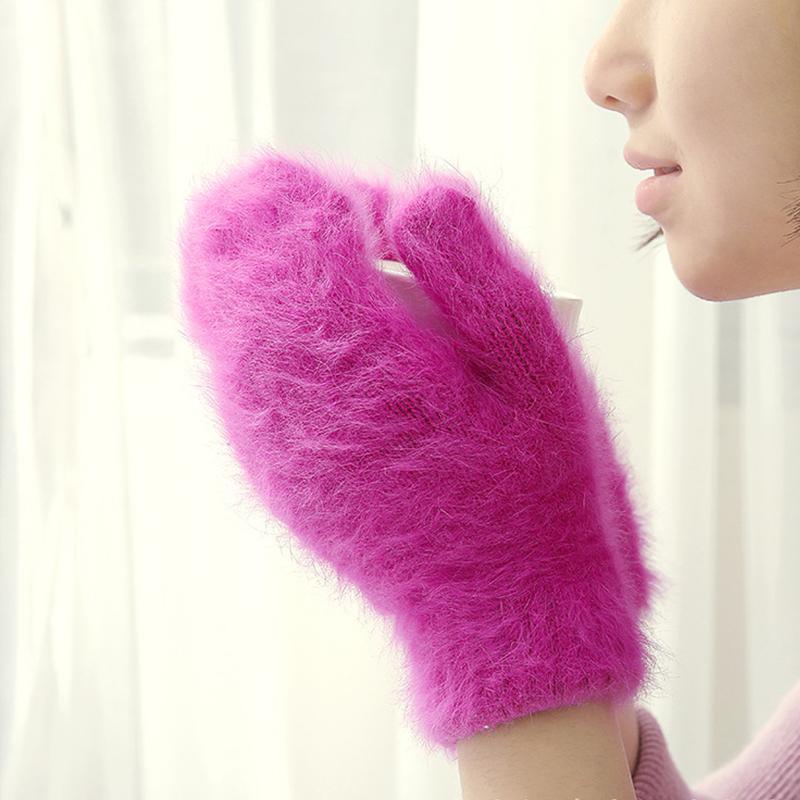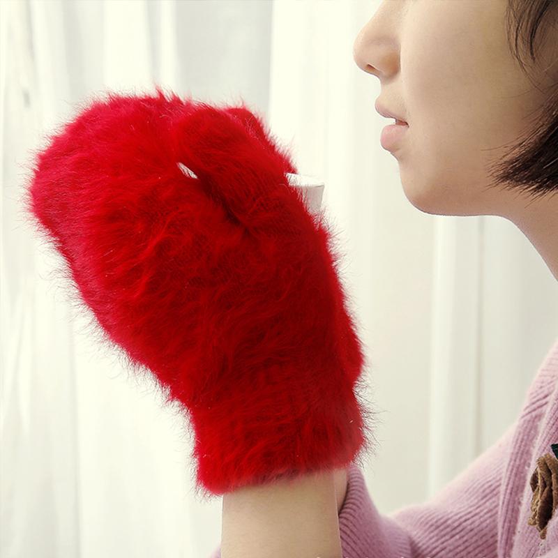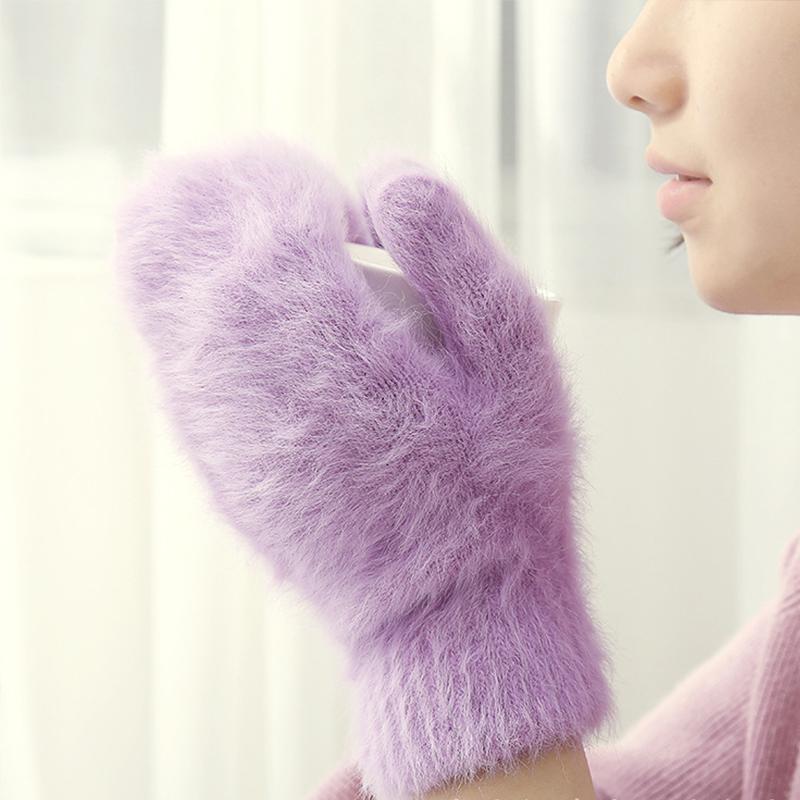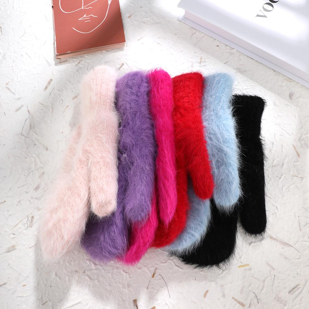 Женские зимние теплые кашемировые перчатки, эластичные варежки с полным пальцем, мягкие теплые плюшевые перчатки из меха кролика, вязаные перчатки для верховой езды для девочек