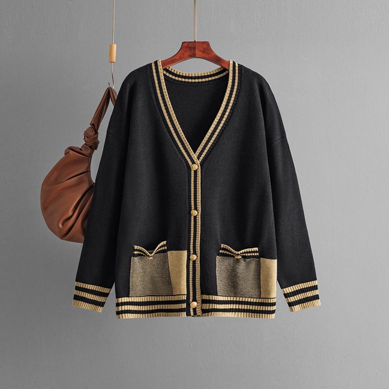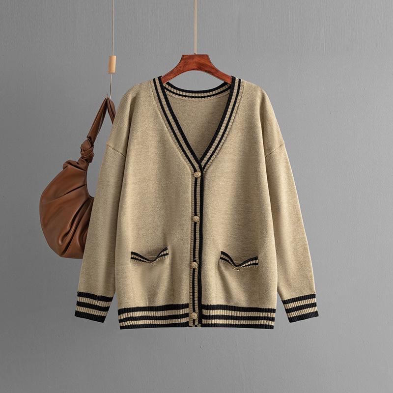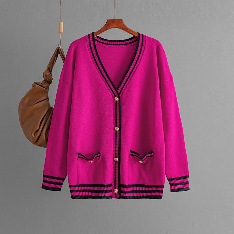 Женские кардиганы с длинным рукавом, свитера с карманами, свободные трикотажные свитера с V-образным вырезом и пуговицами, верхняя одежда для женщин, повседневные осенние вязаные кардиганы, куртки