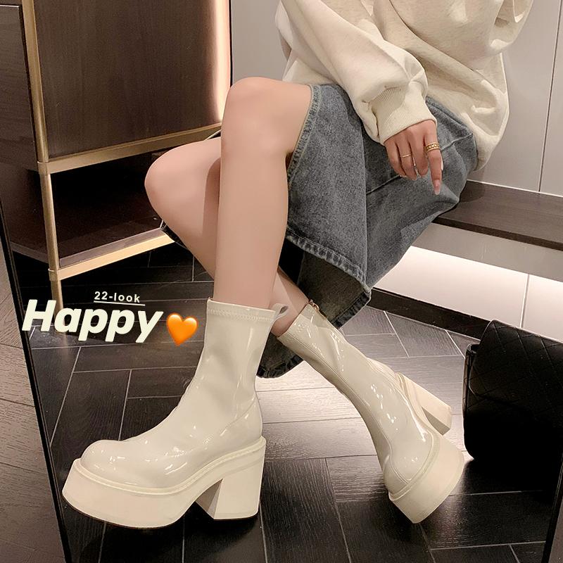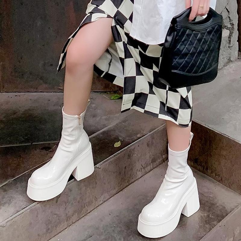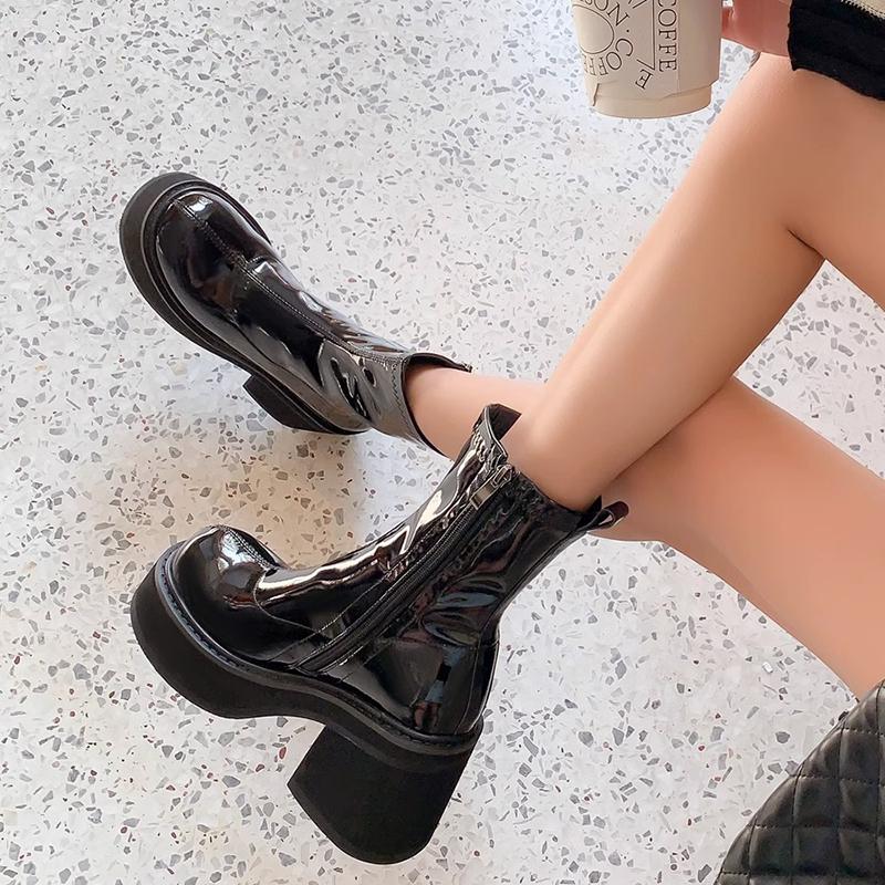 Женские ботильоны на высоком каблуке, модные элегантные лакированные туфли на осень-зиму в стиле панк, женские короткие ботильоны Morder