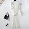 Женское повседневное ребристое трикотажное платье с длинным рукавом и воротником-стойкой, облегающее осеннее элегантное платье-свитер с высоким воротом, однотонное трикотажное платье миди для женщин