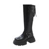 Джинсовые ботинки для женщин Мотоциклетные ботинки Ретро коричневые с пряжкой на ремне Круглые высокие женские ботинки Женские ботинки на платформе Обувь для женщин
