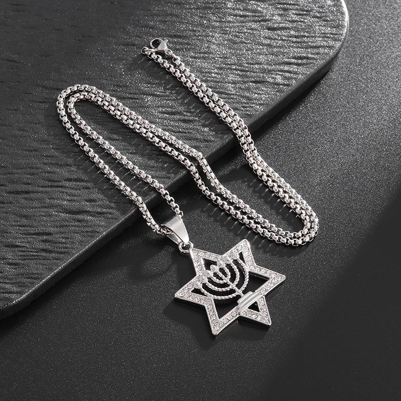 Модный хип-хоп титановый стальной горный хрусталь Звезда Давида кулон для мужчин гексаграмма ожерелье панк стиль бойфренд ювелирные изделия аксессуары