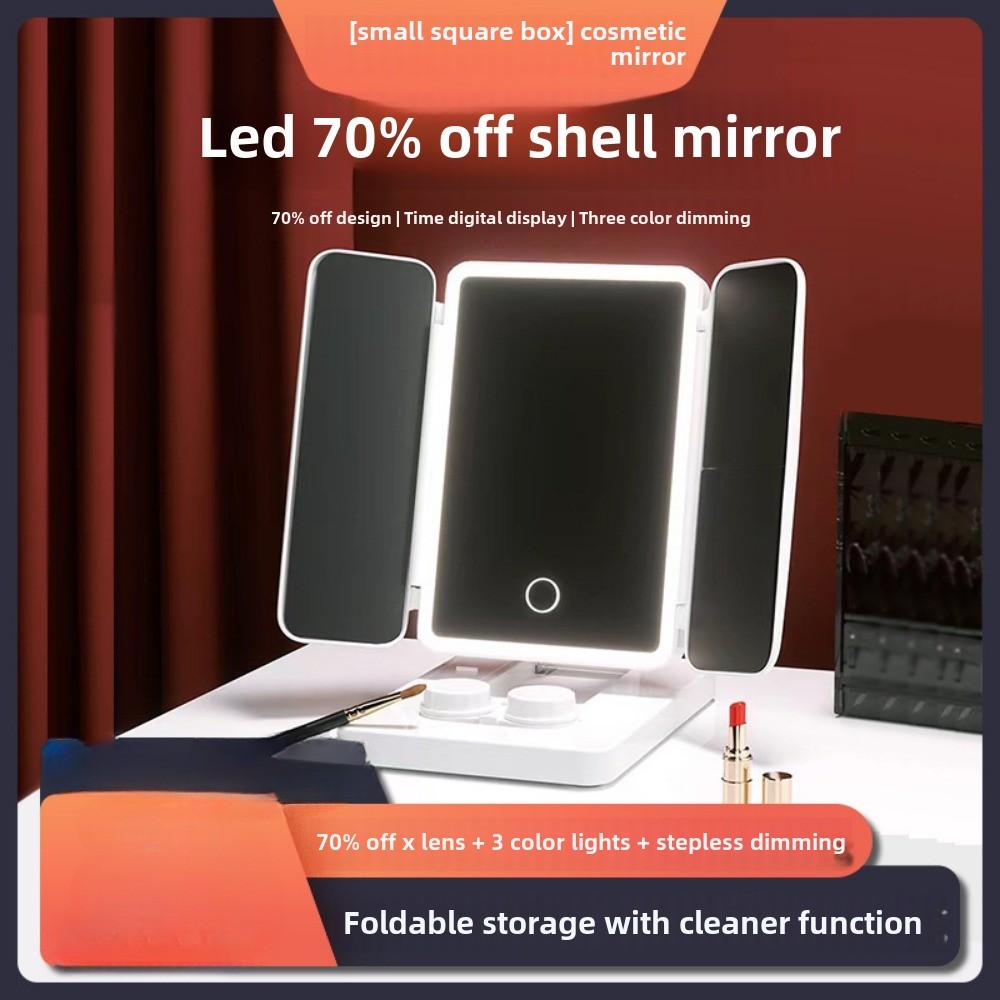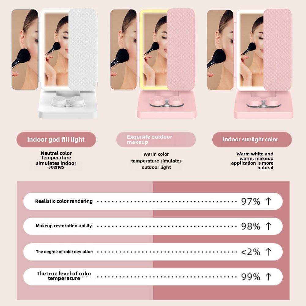 Складное зеркало для макияжа с подсветкой и светодиодной подсветкой, перезаряжаемое косметическое зеркало