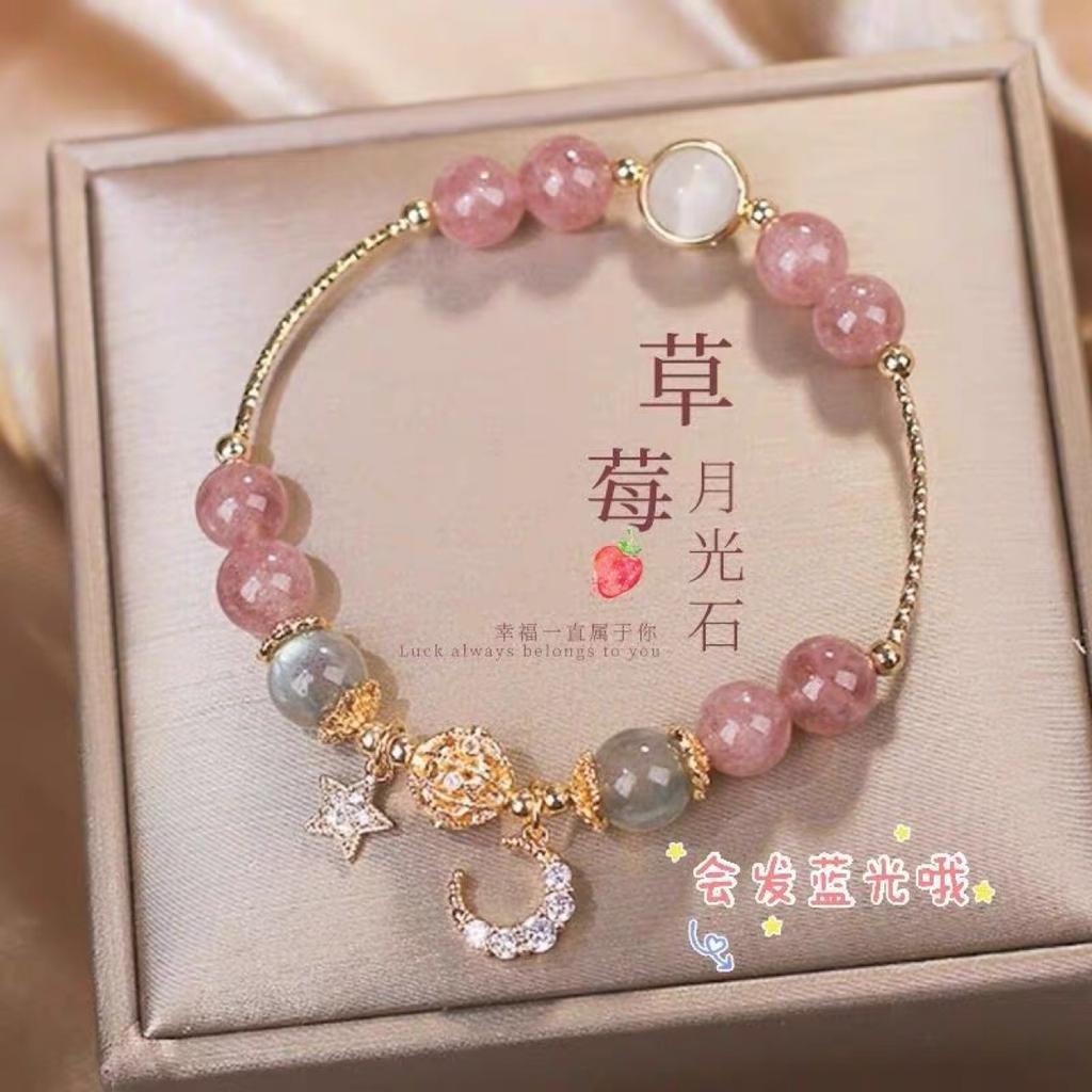 Браслет из натурального клубничного кварца с розовым кристаллом и серым лунным камнем для девочек, двухслойный браслет Mobius с особым дизайном