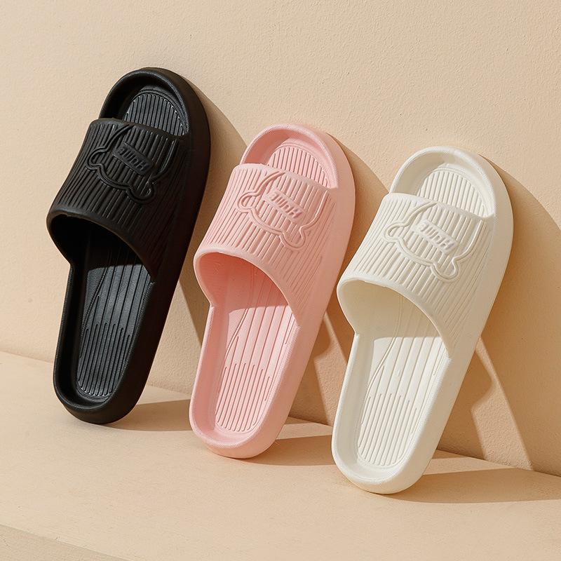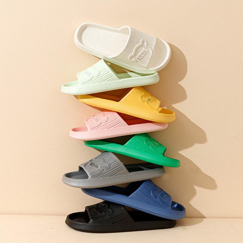 Модные милые тапочки с рисунком медведя женские летние банные домашние шлепанцы нескользящие тапочки без застежек тапочки из ЭВА для пар